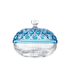 These boxes, inspired by the bobèches of the chandeliers in the Royal collection, feature a clear crystal base with Venetian stripes and a variety of crystal lids, sometimes colored, cut adorned with clear hexagonal crystal.